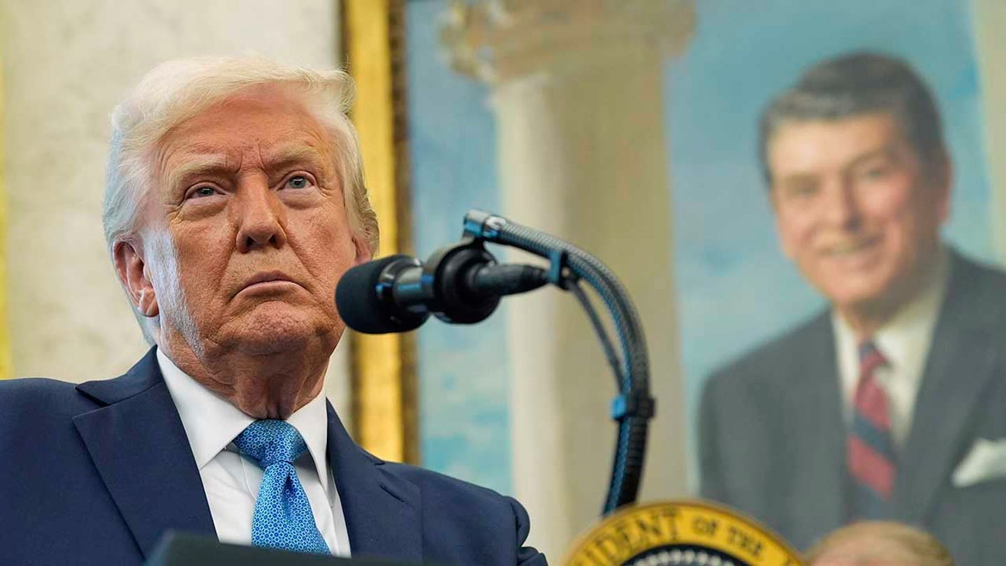Vedúci štátu Donald Trump hovorí k tlačovým reportérom, keď sa zúčastňuje rituálneho prisahania Paula Atkinsa ako predsedu akcií a výmenných kompenzácií, na oválnom pracovisku Bieleho domu, v utorok 22. apríla 2025 vo Washingtone. (AP Photo/Alex Brandon)