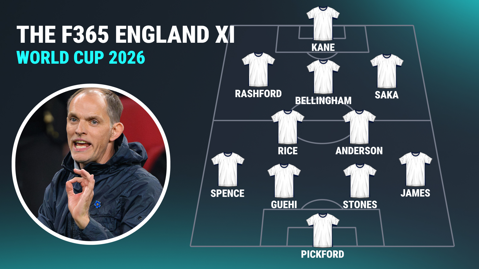 Vskutku, osem mien je jednomyseľne vybratých medzi selektormi tu na F365: Harry Kane, Bukayo Saka, Jude Bellingham, Declan Rice, Elliot Anderson, Reece James, Marc Guehi a Jordan Pickford.