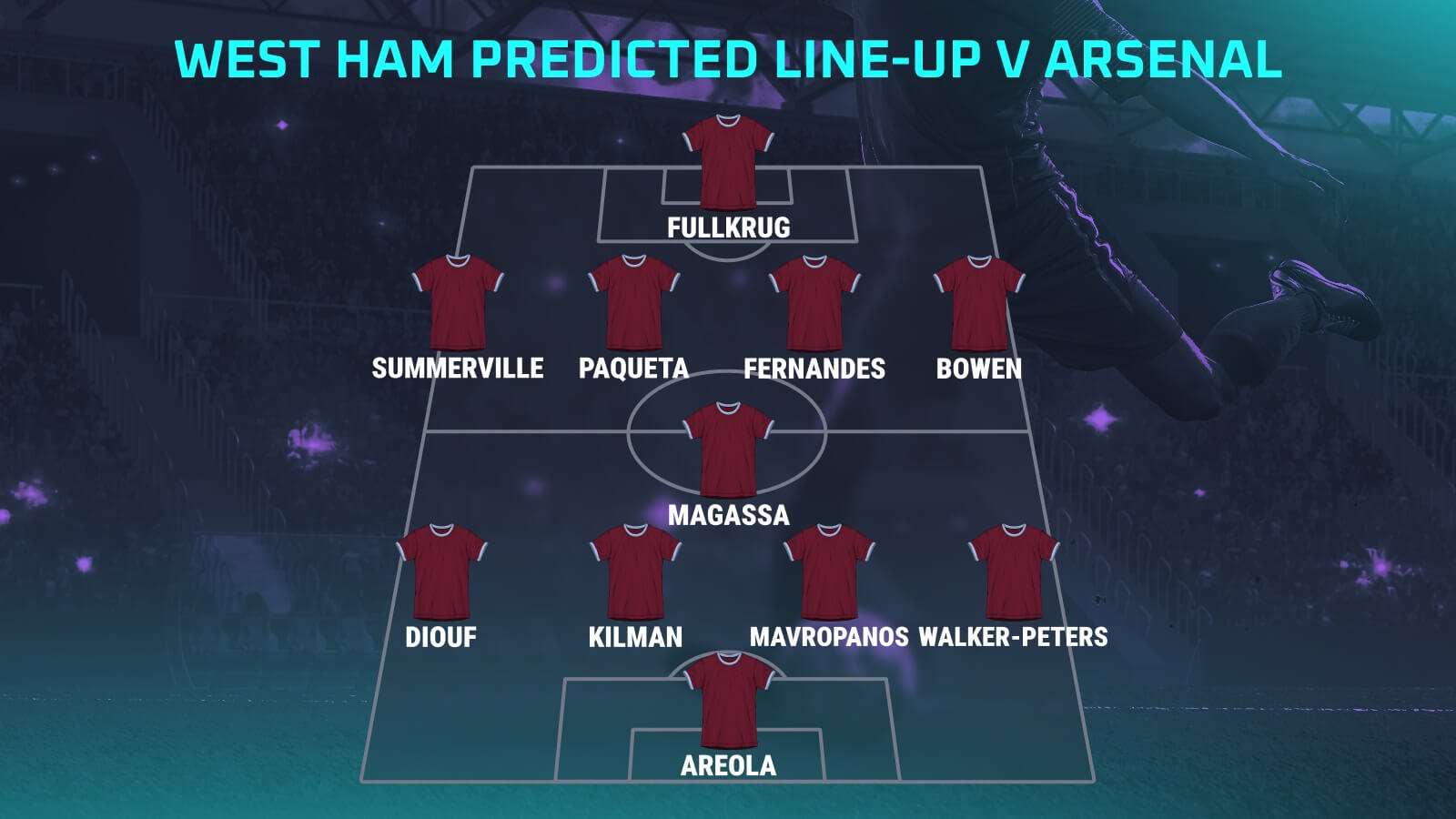 (4-1-4-1) Areola; Walker-Petters, Mavropanos, Kilman, Diouf; Magassa; Bowen, Fernandes, Paqueta, Summerville; Füllkrug