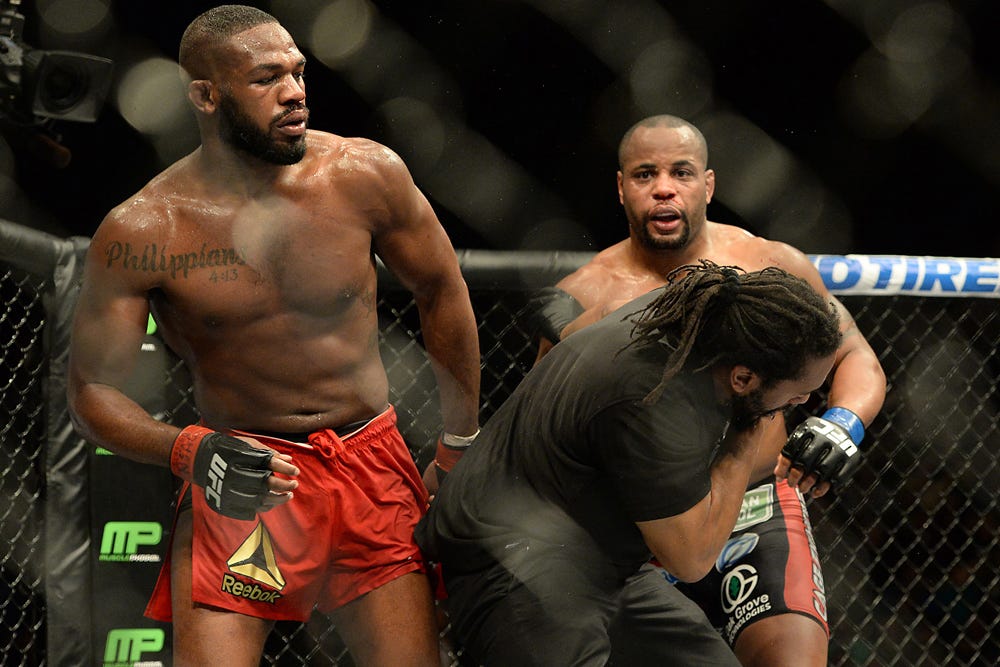A niekoľko týždňov pred zápasom bol Jones označený za neúspešný test na drogy na kokaín – hoci mu nebola uložená žiadna suspendácia, pretože to bolo mimo súťaže, a zlyhanie testu bolo oznámené až tri dni po jeho jednomyseľnom víťazstve nad Cormierom.