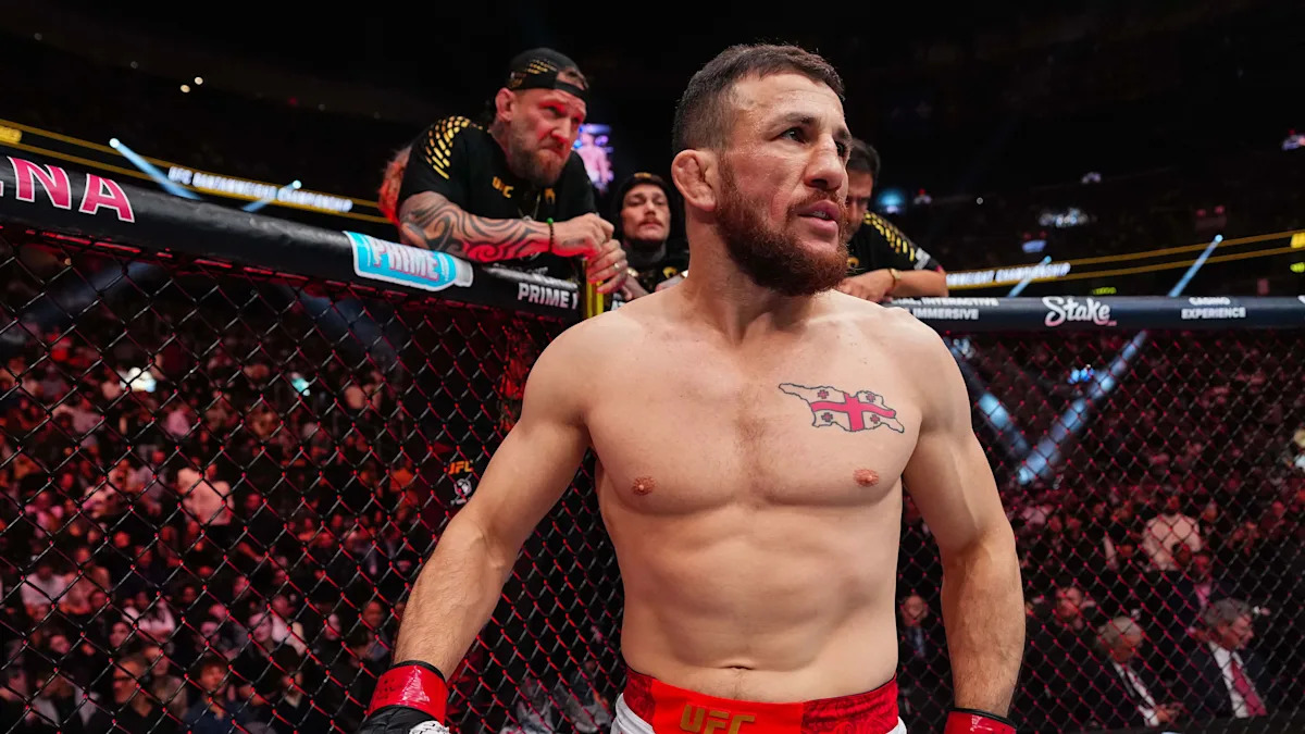 Merab Dvalishvili sa zasekol počas posledného úseku generačného behu, počas ktorého v sobotu súťažil vo svojom štvrtom zápase o titul v tomto roku na karte UFC 323 v T-Mobile Arene v Las Vegas.