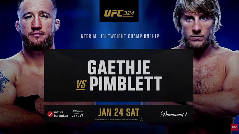 UFC 324 sa koná 24. januára v T-Mobile Arene v Las Vegas a malo sa na ňom odohrať pár zápasov o titul, kým tento hlavný turnaj minulý týždeň nevypadol. Tiež bude mať nový čas začiatku hlavnej karty o hodinu skôr v porovnaní s minulými očíslovanými udalosťami.