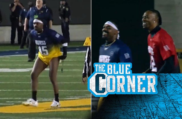 Myslíte si, že je to príliš kruté? Potom si pozrite tento highlight z futbalového zápasu celebrít počas týždňa Super Bowl, ktorý sa konal vo štvrtok na štadióne California Memorial Stadium v ​​Berkeley, kde bol Jones úplne uvarený, keď sa snažil pokryť legendu NBA Dwighta Howarda na poštovej trase (cez X).