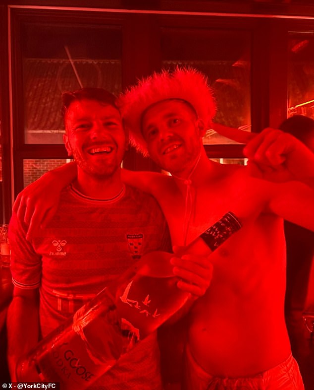 24-hodinová propagačná párty v York City: Boozy hviezdy oblečené v kompletnej výbave pokračujú v oslavách ako hrdina, ktorý strelil gól, aby ich poslal do League Two, vyzerá horšie na nosenie po ťažkej noci