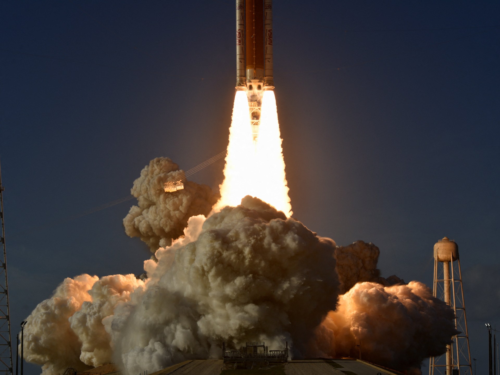 322-stopová raketa Space Launch System (SLS) odštartovala v stredu o 18:35 ET (22:35 GMT) z Cape Canaveral na Floride a poslala kapsulu posádky Orionu na 10-dňovú cestu.