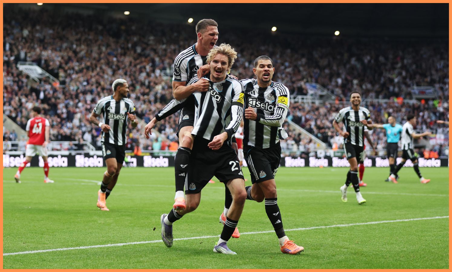 Sven Botman oslavuje s Nickom Woltemadem počas zápasu Newcastle vs Arsenal (Foto: George Wood/Getty Images)