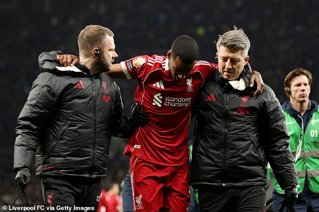 Alexander Isak bol nútený odísť pre škaredé zranenie po tom, čo skóroval za Liverpool proti Tottenhamu