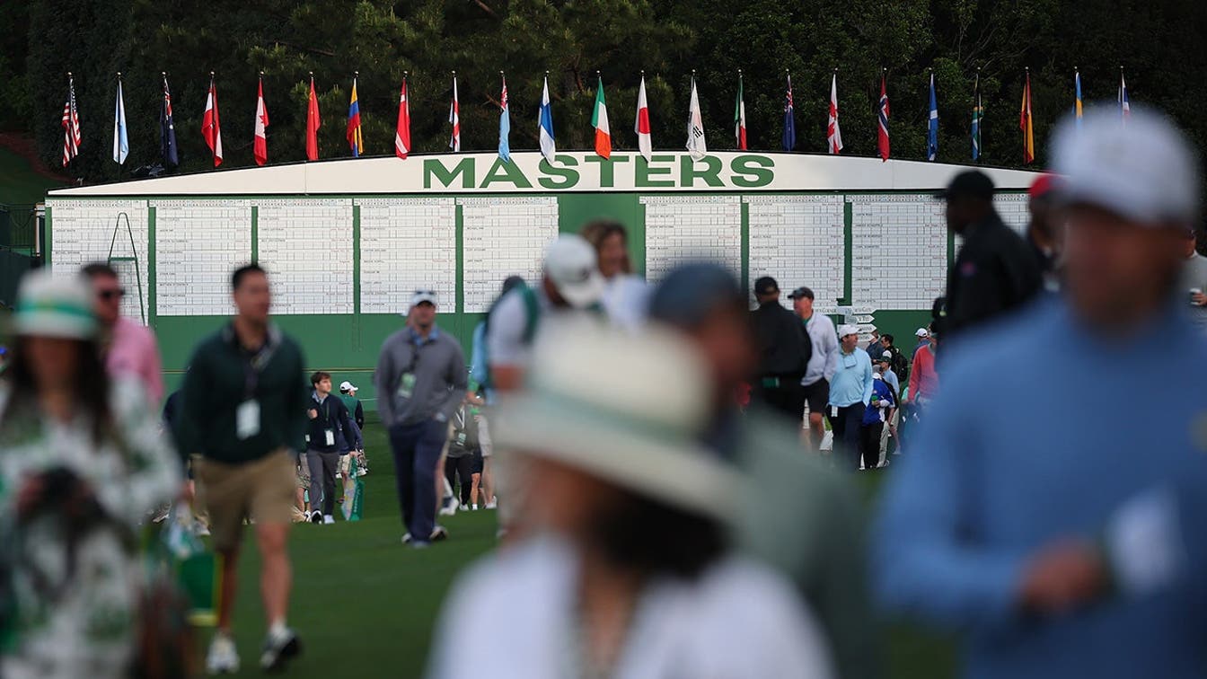 Celkový pohľad na rebríček, keď sa patróni pohybujú po ihrisku počas cvičného kola pred turnajom Masters 2026 v Augusta National Golf Club v Auguste, Georgia, 6. apríla 2026. (Hector Vivas/Getty Images)