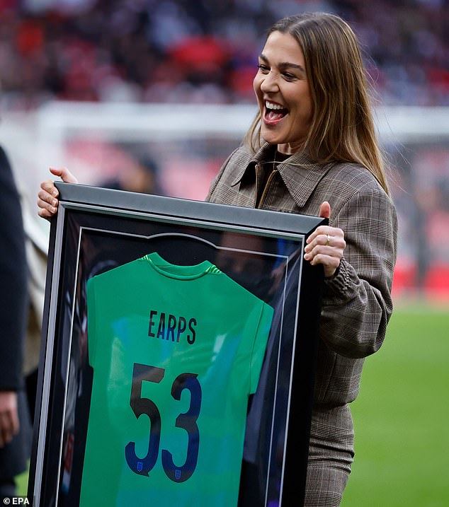 Dav vo Wembley srdečne privítal Mary Earpsovú s košeľou na oslave jej 53 čiapok.
