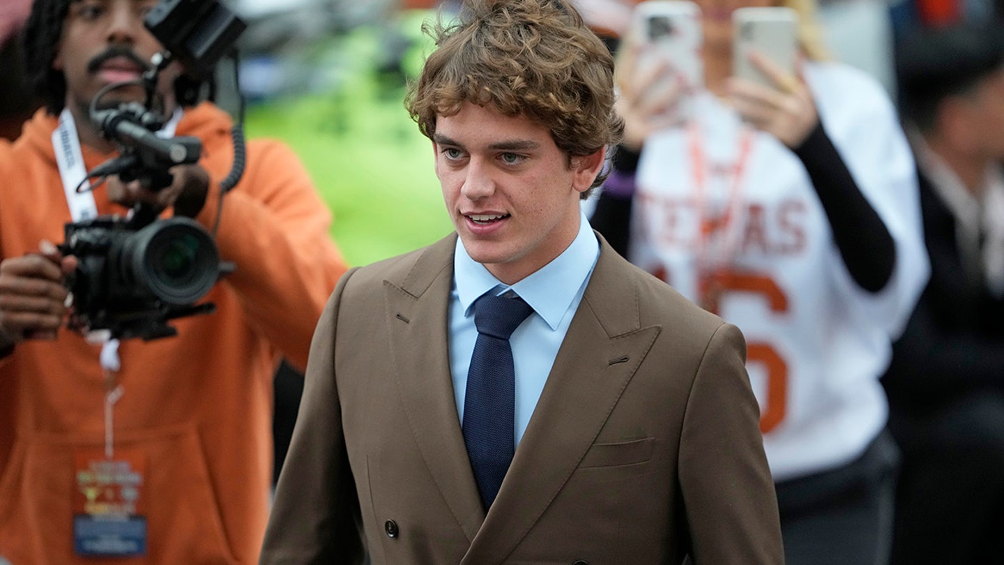 Rozohrávač Texas Longhorns Arch Manning vstupuje na štadión Darrell K Royal-Texas Memorial pred zápasom proti Texas A&M Aggies 28. novembra 2025. (Scott Wachter/Imagn Images)