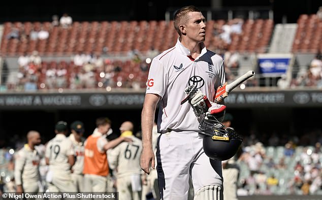 Povinné uznanie: Foto: Nigel Owen/Action Plus/Shutterstock (16140315fi) Zak Crawley z Anglicka opúšťa ihrisko po svojom prepustení; 20. decembra 2025, Adelaide Oval, Adelaide, Južná Austrália, Austrália; Ashes International Test Cricket, Deň štvrtý, Austrália verzus Anglicko. Austrália v. Anglicko, tretí test kriketu Ashes, 4. deň, Adelaide Oval, Adelaide, Austrália – 20. decembra 2025