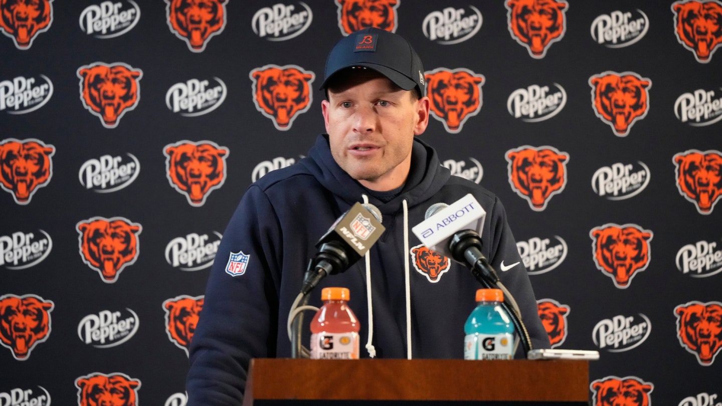 Hlavný tréner Chicago Bears Ben Johnson hovorí po zápase play-off NFL s divokou kartou proti Green Bay Packers v sobotu 10. januára 2026 v Chicagu. (AP Photo/Nam Huh)