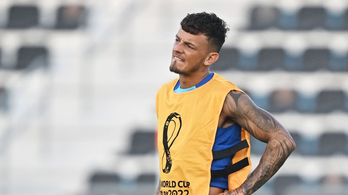 Anglický obranca Ben White sa 20. novembra 2022 zúčastňuje na tréningu na štadióne Al Wakrah SC Stadium v ​​Al Wakrah, južne od Dauhy, večer v zápase skupiny B futbalového turnaja Kataru 2022 medzi Anglickom a Iránom.