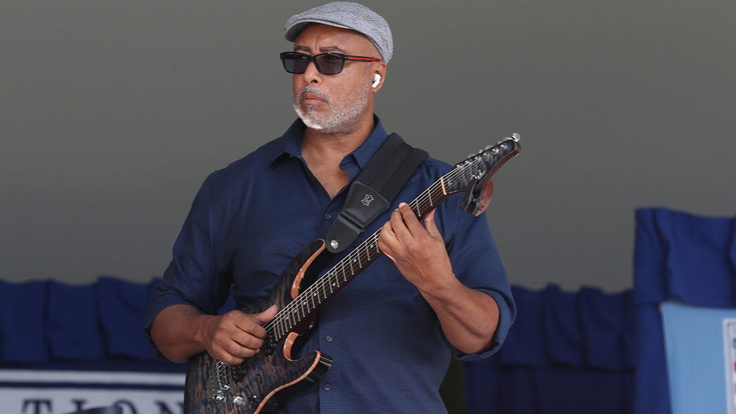 Predchádzajúce New York City Yankees Bernie Williams hrá na gitare „Celebrity Spangled Banner“ v Howard J. Lamade Arena vo Williamsporte v Pensylvánii. (Al Tielemans/ Sports Illustrated pomocou Getty Pictures)