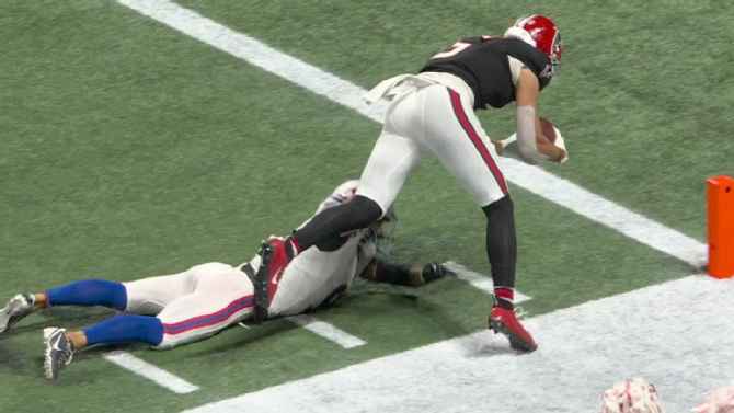 Drake London sa ukáže, aby sa ponoril za cieľ, avšak jeho nohy pristávajú mimo hraníc, keď sa sokoly končí v počiatočných päťdesiat percent.