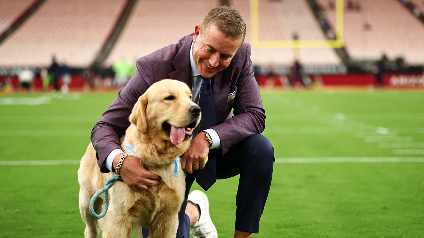 Komentátor Prime Video Kirk Herbstreit pózuje na fotke so svojím psom Petrom pred zápasom medzi Seattle Seahawks a Arizona Cardinals na State Farm Stadium 25. septembra 2025 v Glendale v Arizone. (Kevin Sabitus/Getty Images)