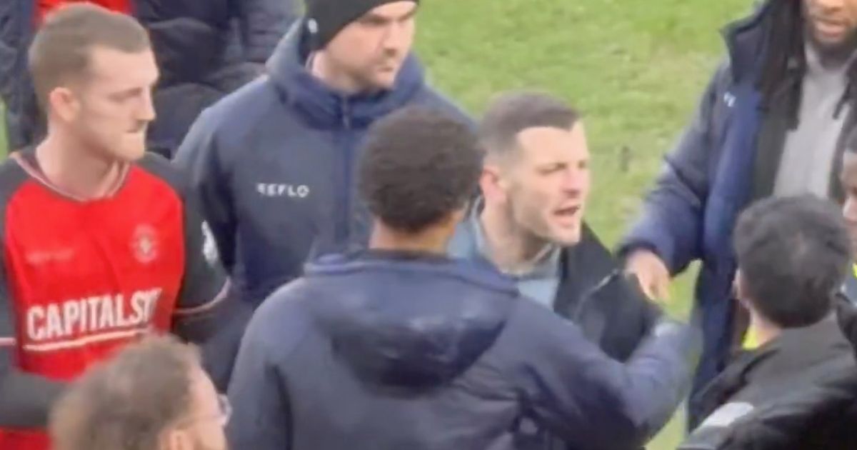 Bývalého stredopoliara Arsenalu Jacka Wilshera odvliekli hráči po sobotňajšej remíze Luton Town s Burton Albion 1:1 po konfrontácii s fanúšikom.