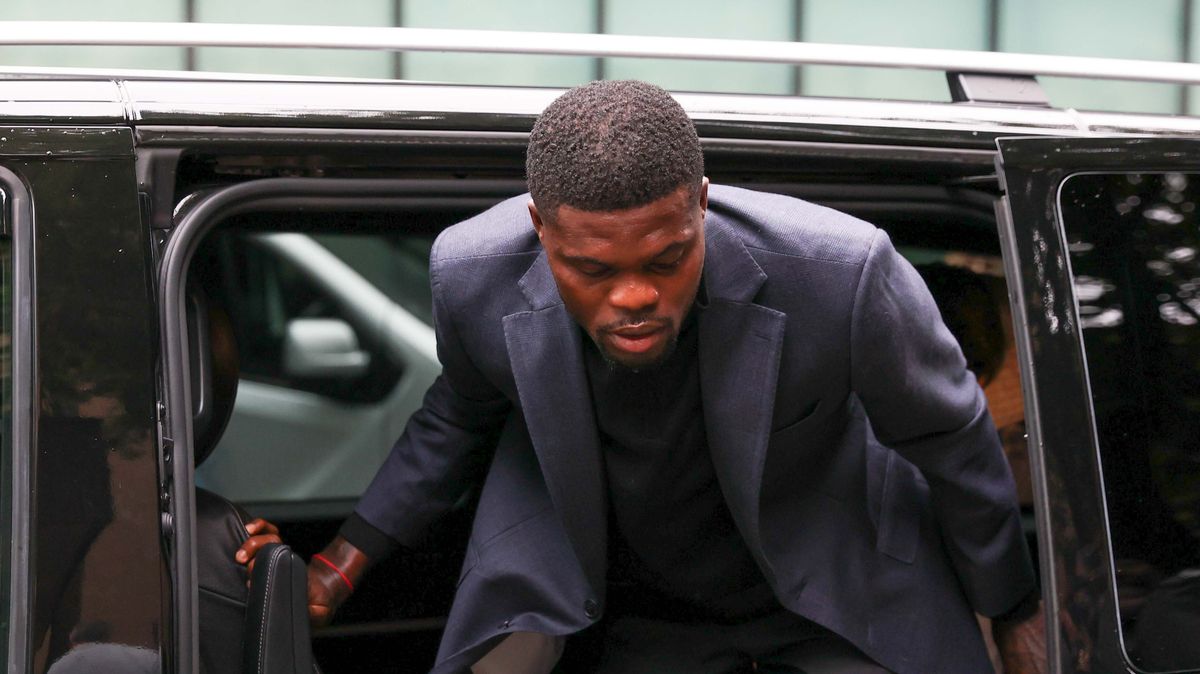 Stredopoliar Villarrealu Thomas Partey prichádza na súd v Southwarku, kde 17. septembra 2025 čelí piatim znásilneniam a jednému sexuálnemu napadnutiu troch žien v rokoch 2021 až 2022 v Londýne v Anglicku.