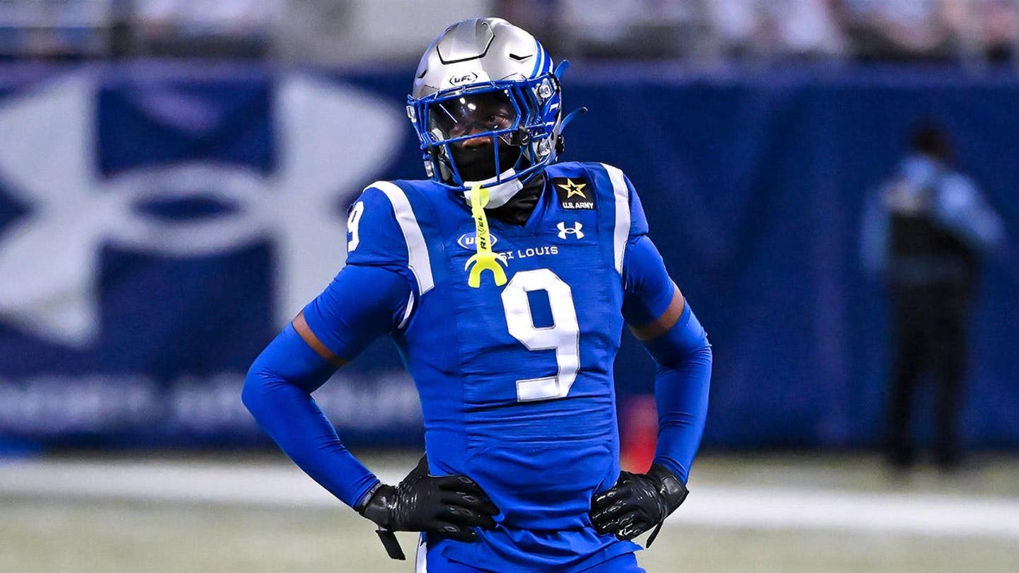 Rohový obranca St. Louis Battlehawks Chris Payton-Jones čaká na obnovenie hry počas zápasu proti Memphis Showboats v The Dome at America’s Center v St. Louis, Mo., 20. apríla 2024. (Rick Ulreich/Icon Sportswire)