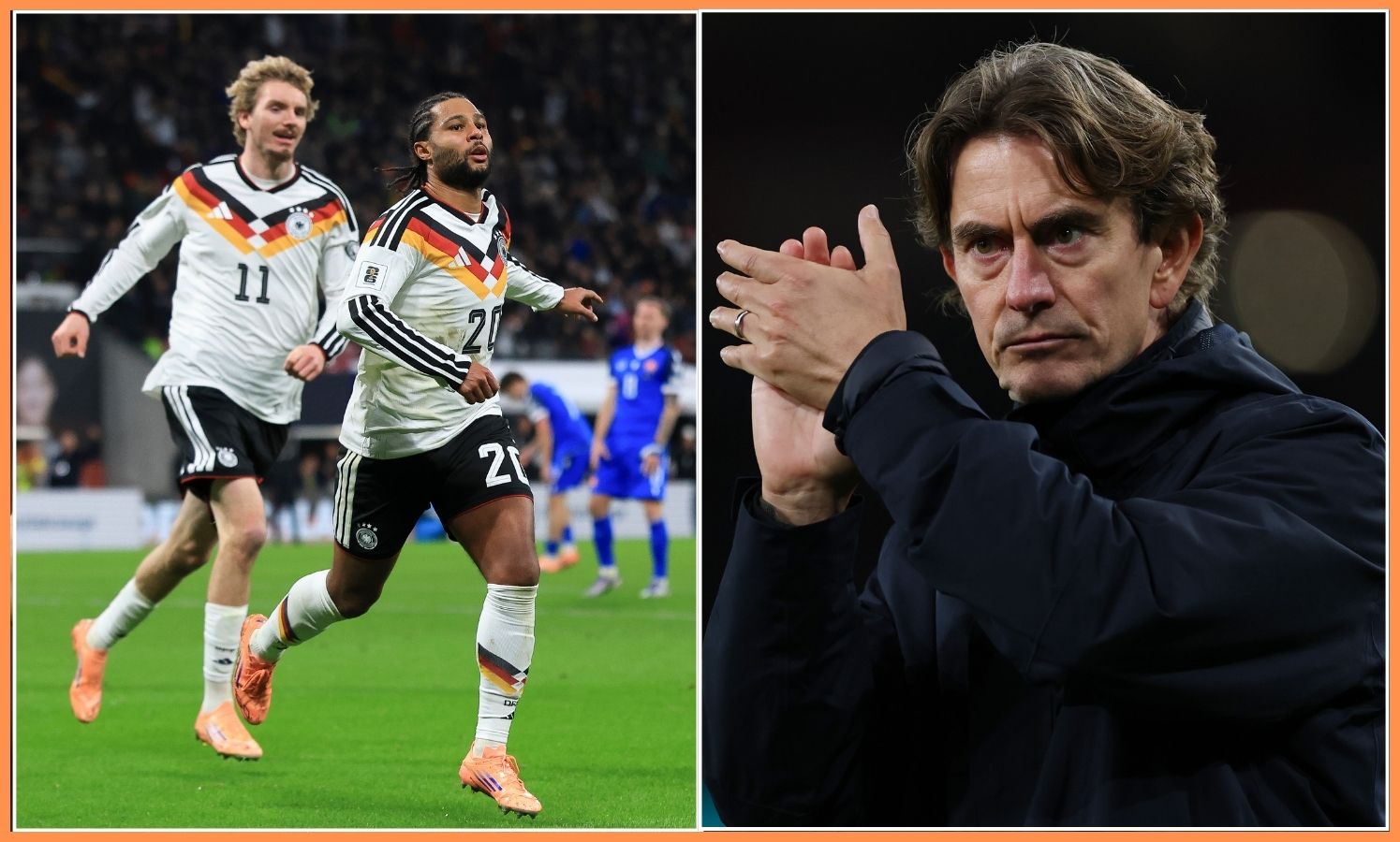 Serge Gnabry a Thomas Frank (Foto: Maja Hitij, Justin Setterfield/Getty Images)