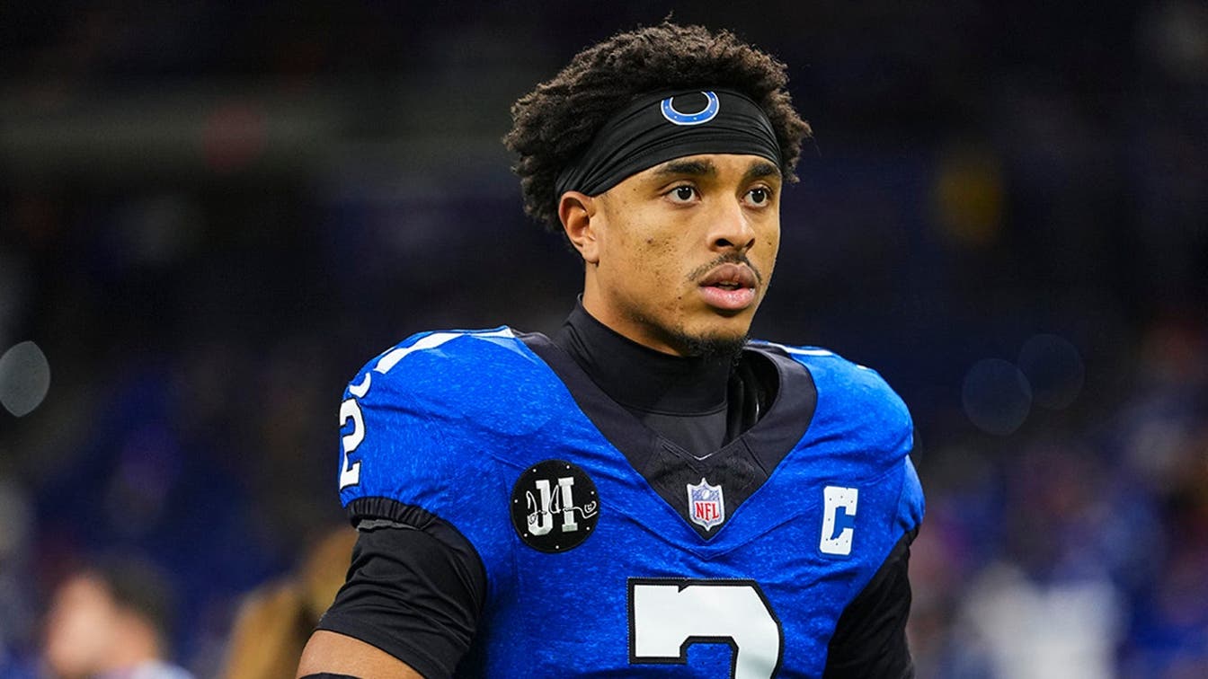 Josh Downs z Indianapolis Colts sa rozcvičuje pred zápasom NFL proti San Francisco 49ers na štadióne Lucas Oil v Indianapolise 22. decembra 2025. (Cooper Neill/Getty Images)