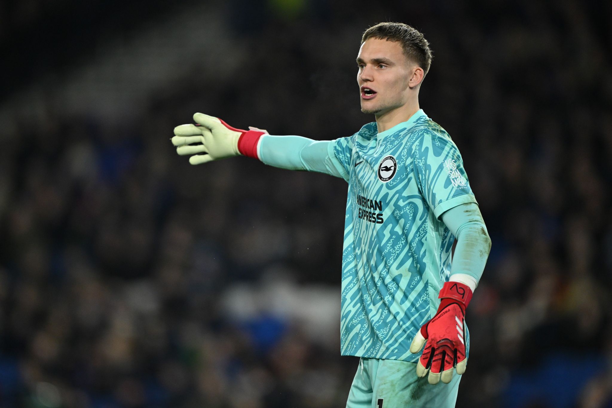 Prizerá sa Bart Verbruggen z Brightonu & Hove Albion (Foto: Mike Hewitt/Getty Images)
