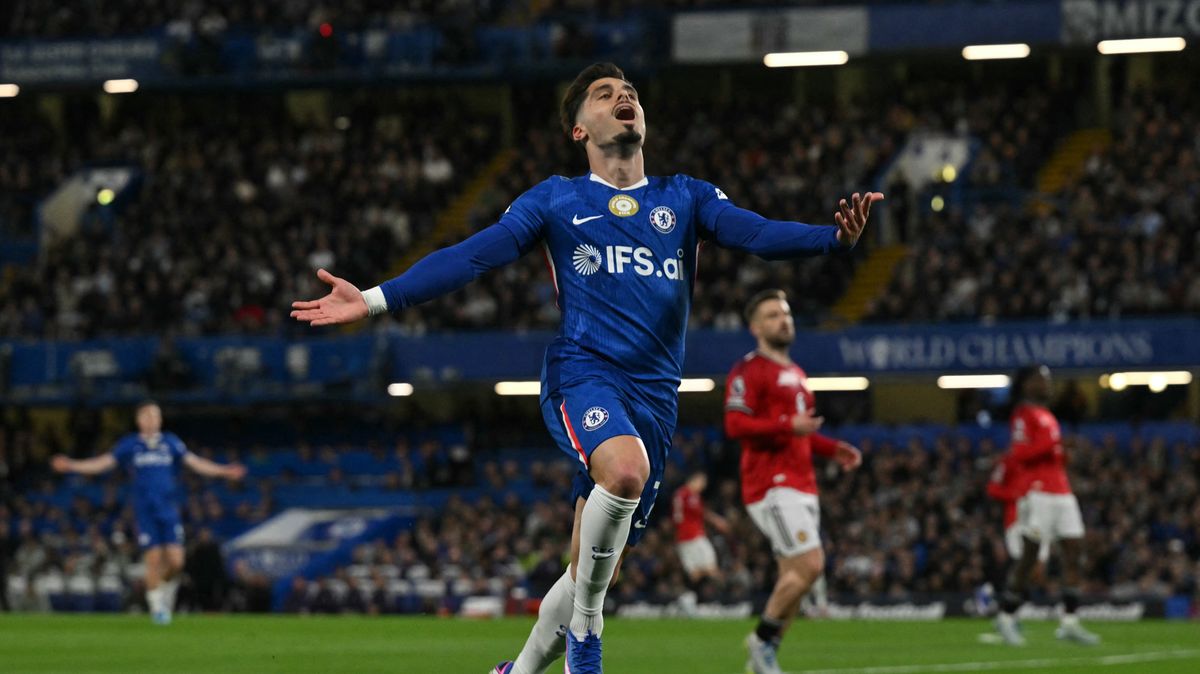 Pedro Neto reaguje počas prehry Chelsea s Manchestrom United