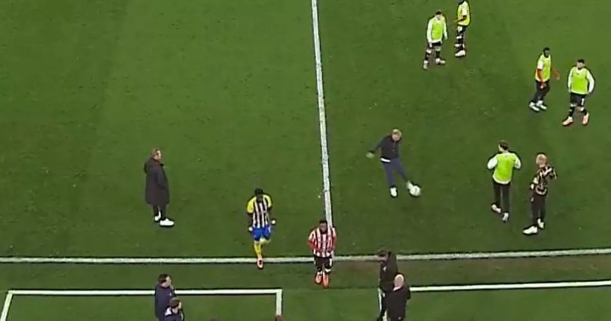 Supervízor Sheffield United Chris Wilder bol v skutočnosti odhalil červenú kartu po tom, čo náhodou zasiahol nasledovníka čepelí s futbalom, ktorý začal priamo do skupiny Bramall Lane.
