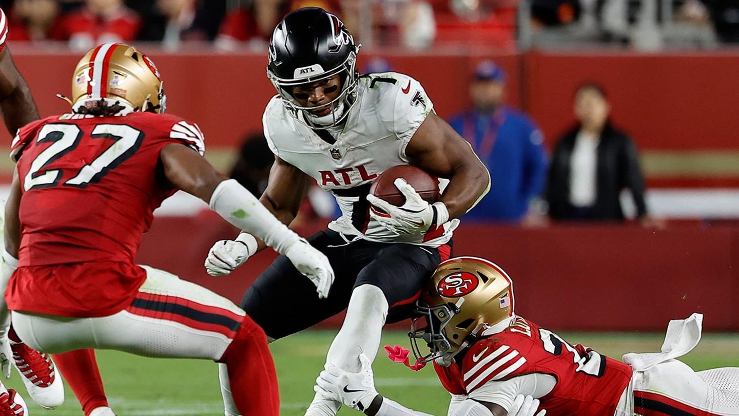 49ers mali schopnosť držať running back Bijan Robinson na 40 ponáhľajúcich trávniky na 14 prináša. Mal 6 úlovkov na 52 trávnikoch a gól. Za Brocka Purdyho zostal obranca San Francisca Mac Jones. Mal 152 prechádzajúcich trávnikov a zákrok.