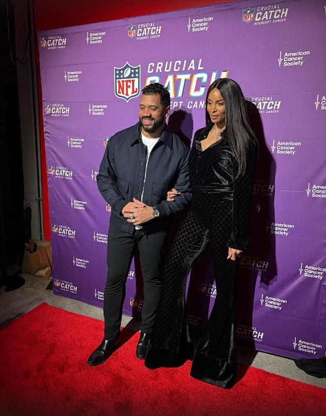 Ciara kráčala po červenom koberci so svojím manželom hviezdou NFL Russellom Wilsonom v utorok večer na ich prvom verejnom podujatí, odkedy sa objavil v spisoch Jeffreyho Epsteina.