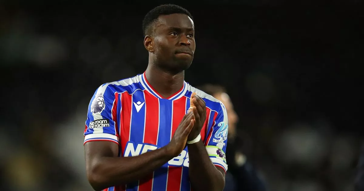Marc Guehi z Crystal Palace tlieska po zápase Premier League proti Fulhamu