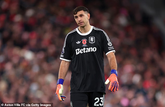 Emiliano Martinez vyzerá nespokojne, odkedy sa pokazil jeho vysnívaný prestup do Man United