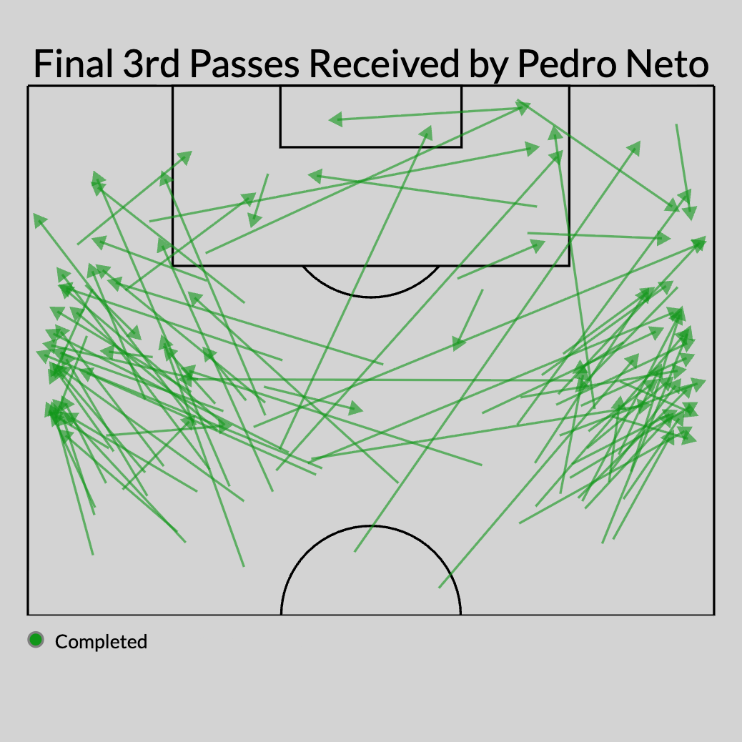 103 prihrávok spoločnosti Neto, ktoré sa dostali do výrazného 3. vedenia, najbližšie opozície, Fernández (67) a demonštrátor João Pedro (61), značne rozsah-bez ohľadu na to, ako hral 92 a 75 minút menej ako oni.