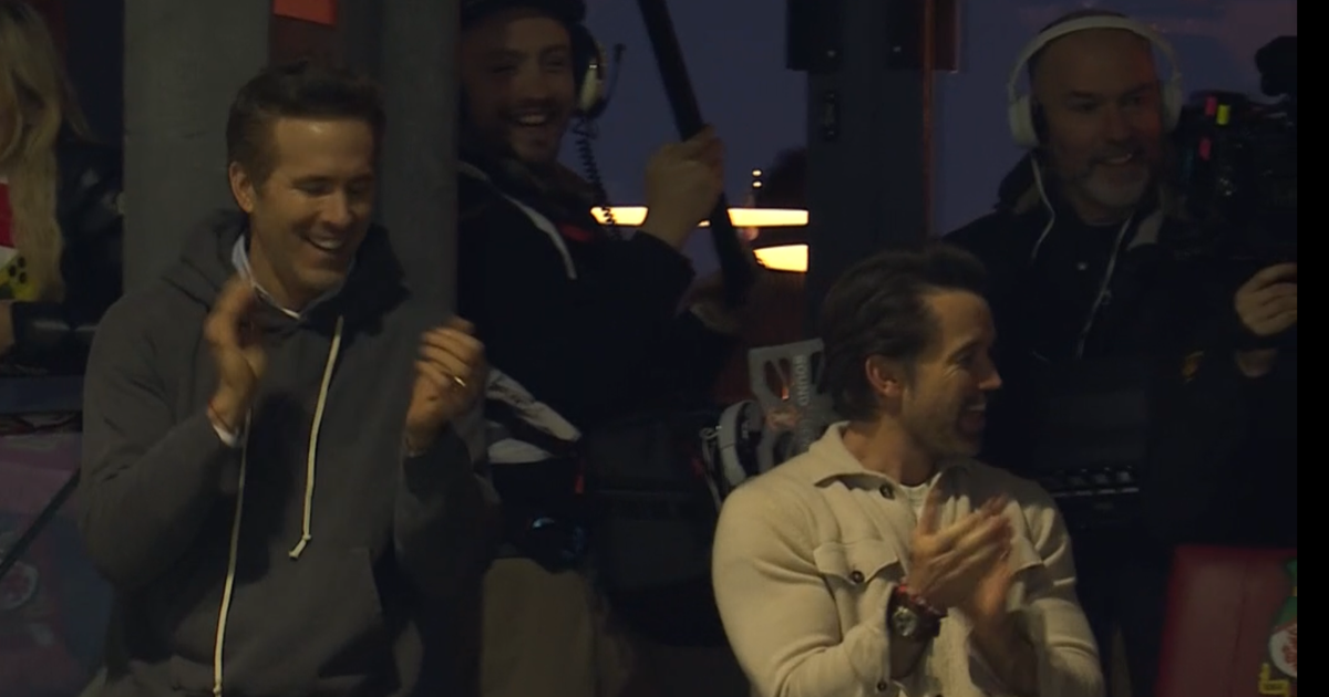 Zatiaľ čo sa hráči tešili s fanúšikmi, televízne kamery sa otočili na Reynoldsa a Roba McElhenneyho v ich režisérskej skrinke, aby zachytili ich reakciu. Zdá sa však, že Reynolds zdieľal chvíľu s niekým na svojom mobile.