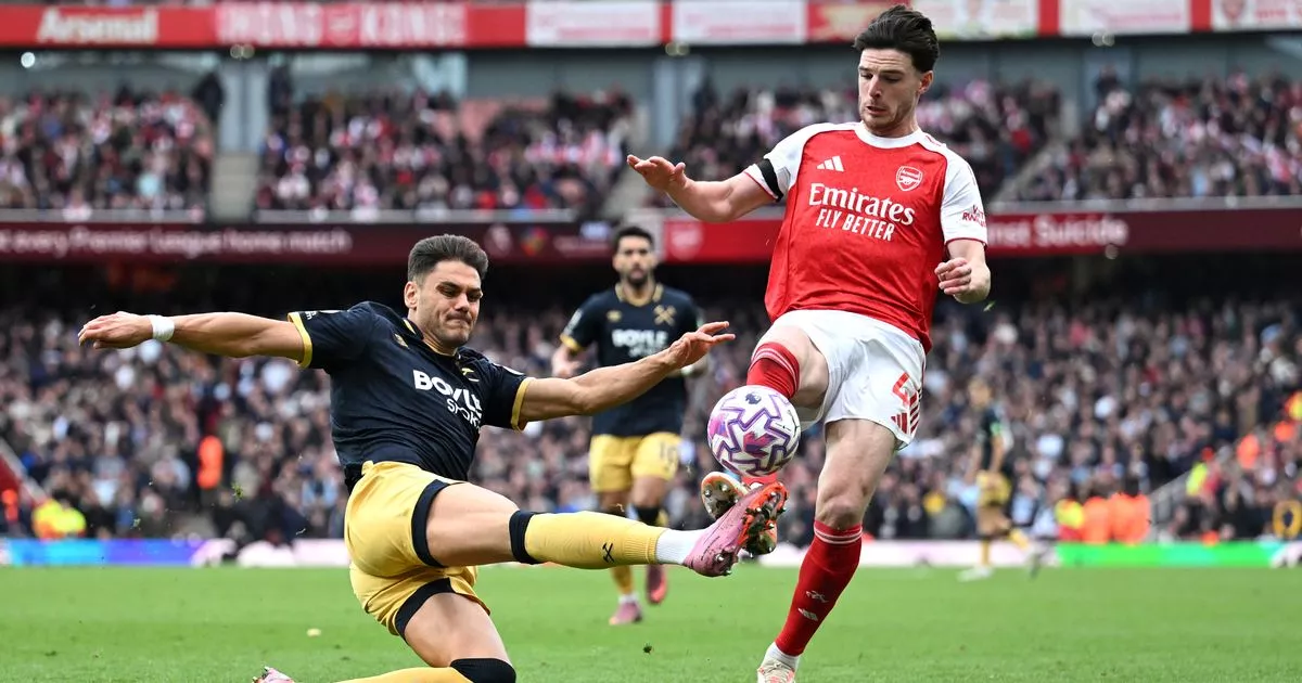 Záložník Arsenal Declan Rice bol vynútený v 2. päťdesiat percent z 2-0 Gain West Pork po tom, čo zostavil úvodný cieľ videohry na štadióne Emirates