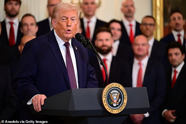 „Odmietli ste Kanade získať Stanleyho pohár už 32. rok po sebe,“ pochválil Trump Panthers, pričom poukázal na dlhé sucho v Kanade bez víťazstva v ich vlastnom národnom športe.