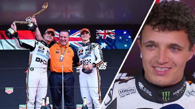 McLaren’s Lando Norris a Ferrari Charles Leclerc reagujú na ich P1 a P2 skončili na Grand Prixu Monako.