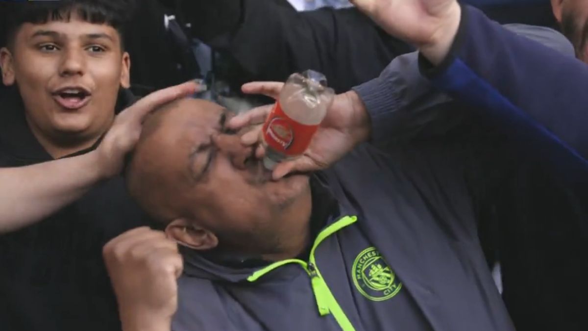 Fanúšikovia Manchestru City zosmiešnili Arsenal virálnym gestom fľaše s vodou na Stamford Bridge po tom, čo prehra Gunners s Bournemouthom ohrozila ich nádeje na titul v Premier League.