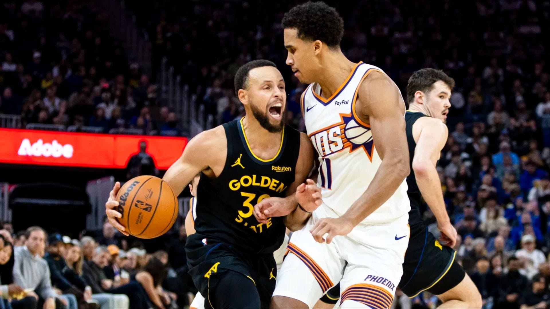 Do konca prvého polčasu zostávali necelé štyri minúty a Jordan Goodwin bol potrestaný za osobnú chybu na Curryho. Goodwin protestoval proti faulu, pretože superhviezda Warriors iniciovala kontakt. Útočník Suns sa snažil obhájiť, no rozhodcovia prisúdili Currymu tri trestné hody.