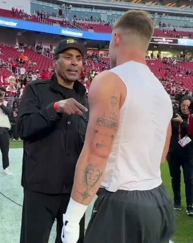 Predtým, ako Niners nastúpili proti Carolina Panthers, kamery zachytili muža, ktorý objal hviezdu zo San Francisca, ktorá utekala späť Christianovi McCaffreymu.