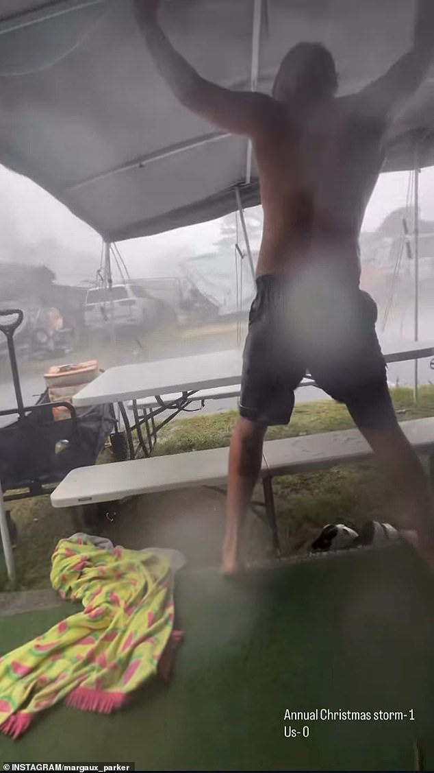 Rodina Parkerovcov bola na Štedrý deň na Gold Coast, keď ich zastihla búrka, zdieľali obrázky a video z následkov spolu s Coreym, ktorý sa zúfalo snažil udržať svoj tábor pohromade.