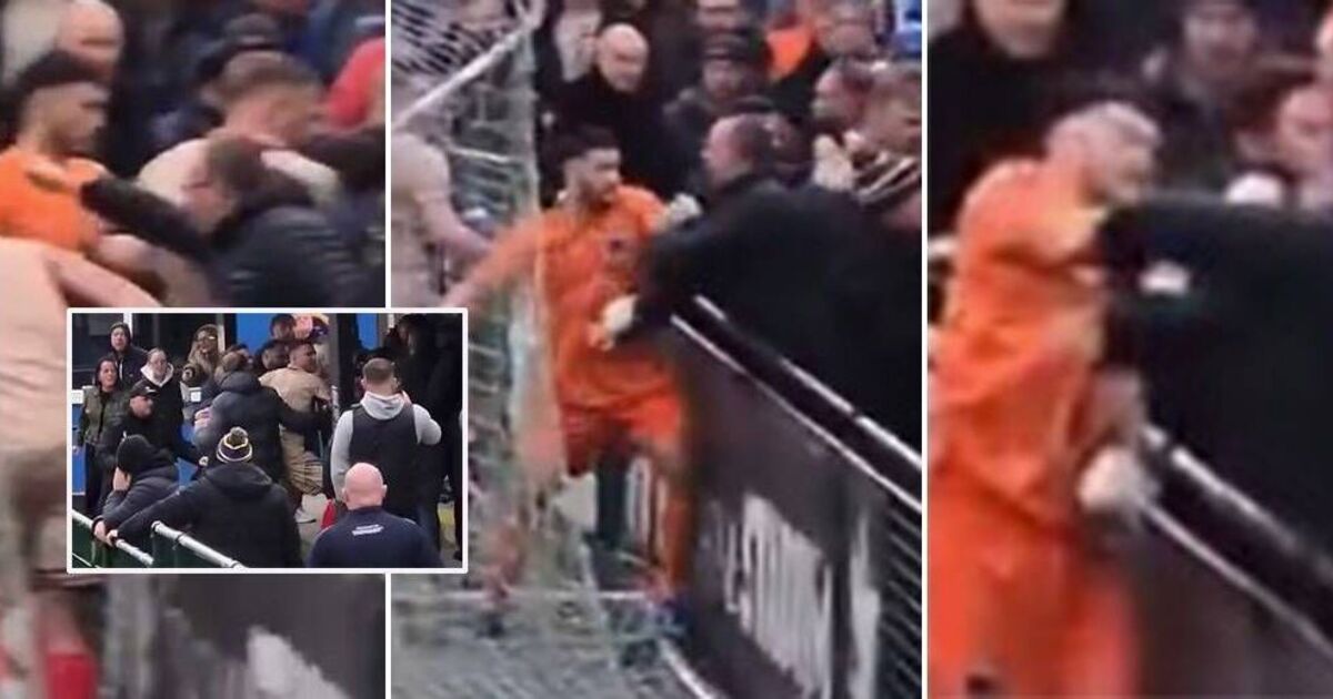 Futbalový oblek bol opustený po tom, čo sa na okraji objavila obrovská hádka, ktorá zahŕňala hráčov aj divákov. Úžasné videozáznamy distribuované na sociálnych sieťach odhaľujú, ako hráči Kidsgrove Athletic na tribúnach stretávajú svojich sledovateľov.
