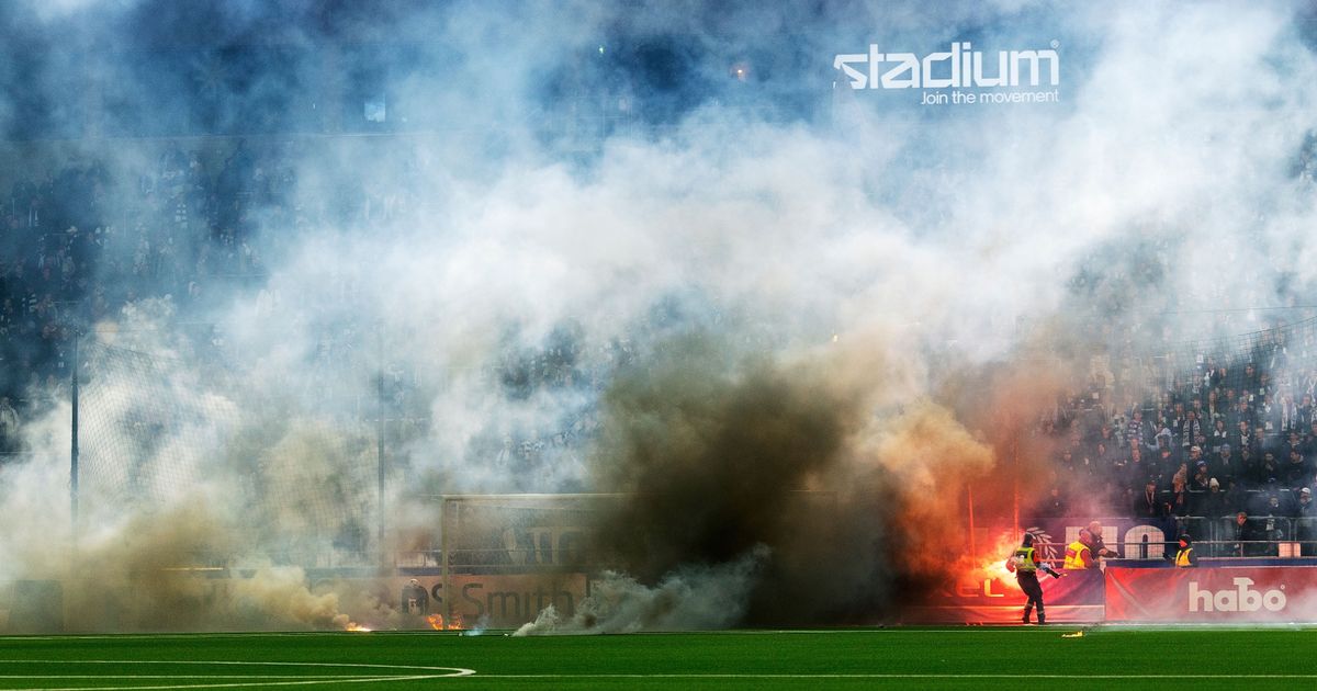 Najšokujúcejší moment však prišiel v 86. minúte, keď svetlica hodená na ihrisko zapálila umelé ihrisko. Rozhodca okamžite ťahal obe skupiny hráčov tunelom.