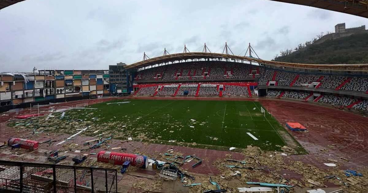 Estádio Dr. Magalhães Pessoa je domovom klubu LigaPro Uniao de Leiria, ktorý sa môže pochváliť kapacitou 23 888 miest. Oficiálny klubový účet UD Leiria sa po prvej búrke objavil na Instagrame, aby ukázal obrovské trosky a zverejnil srdcervúce obrázky pred a po, ktoré zachytávali ihrisko a atletickú dráhu pokrytú troskami. Strecha hlavnej budovy sa tiež zrútila a popadali aj okolité stromy.
