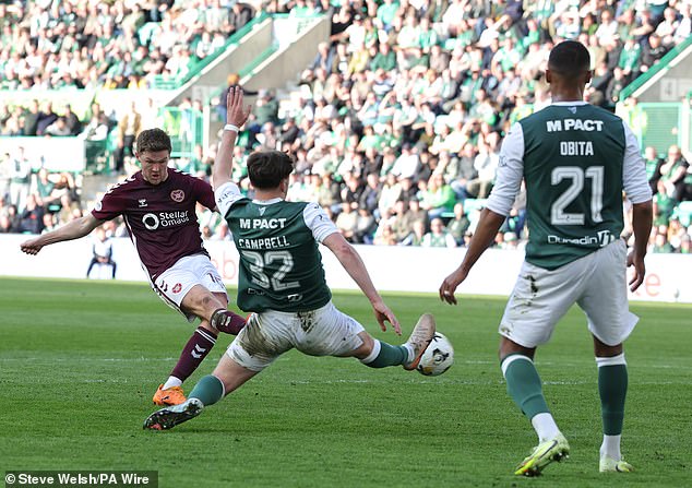 Muži Dereka McInnesa boli pozadu, keď sa Martin Boyle odhlásil z tohto zápasu celkom skvelým gólom. Ale kyvadlo sa otočilo v prospech Hearts, keď bol Raphael Sallinger, brankár Hibs, vylúčený za to, že bezhlavo odovzdal loptu mimo svojej šestnástky pred vyrovnaním zápasu.