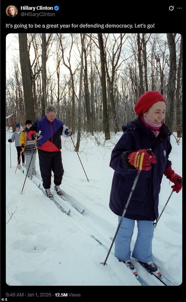 Prvá dáma prezidenta Billa Clintona a ministerka zahraničia Baracka Obamu sa predviedli tým, že zverejnili starú fotografiu, na ktorej beží so svojím manželom. Hoci fotografia nie je datovaná, vyhľadávanie umelou inteligenciou a Billova vetrovka Nike v blokovej farbe naznačuje, že to bolo urobené v polovici 90. rokov.
