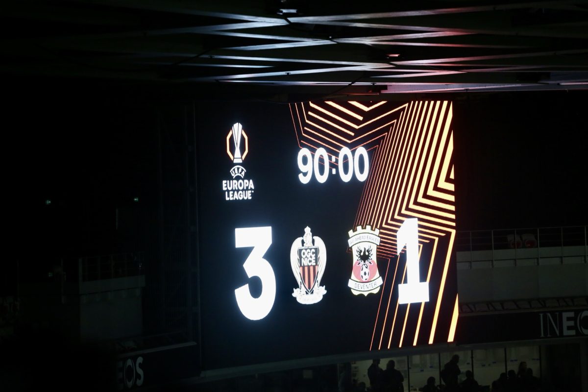 OGC Nice zaznamenalo svoje prvé body v Európskej lige UEFA (3-1), čím uľavilo od Go Ahead Eagles v zápase pokazenom udalosťami mimo ihriska.