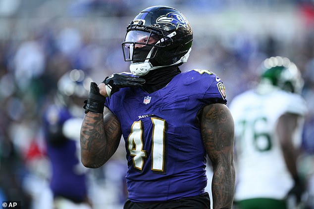 Jones, ktorý má dve deti s partnerkou Kaylou Krenovou, absolvoval štyri vystúpenia za Ravens od svojho novembrového nástupu k Titans, pričom zaznamenal päť výstrojov a 1,5 vriec.
