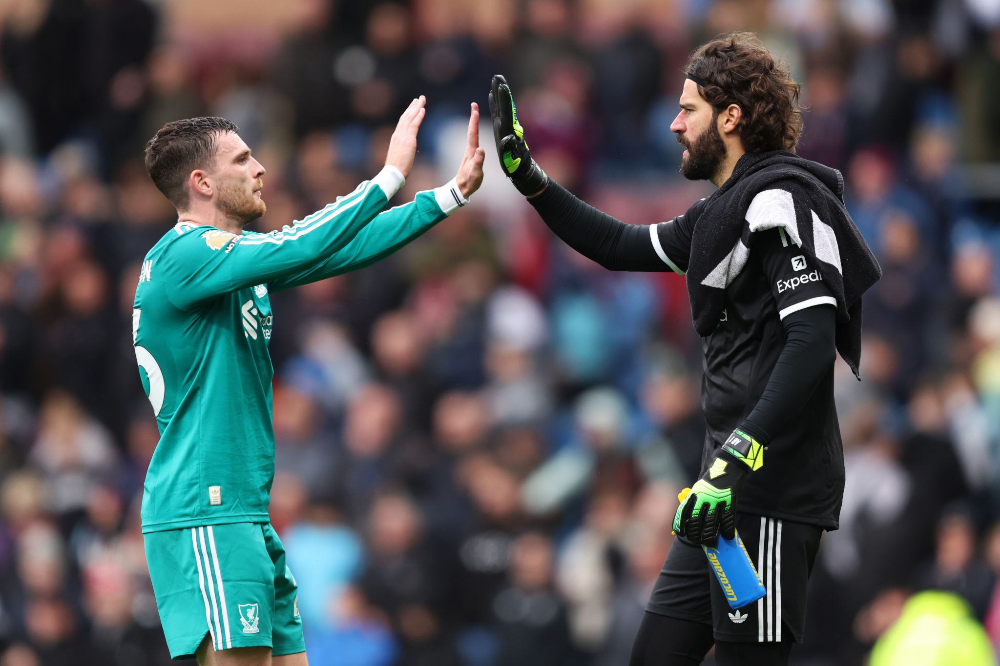 Andy Robertson oslavuje víťazstvo Liverpoolu nad Burnley. (Foto: Matt McNulty/Getty Images)