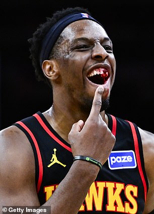 Na snímke bol Okongwu, ktorý sedel v lekárskej miestnosti, so zakrvavenými ústami a množstvom chýbajúcich zubov, ako sa uškrnul do kamery.